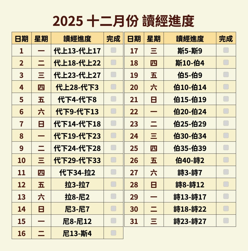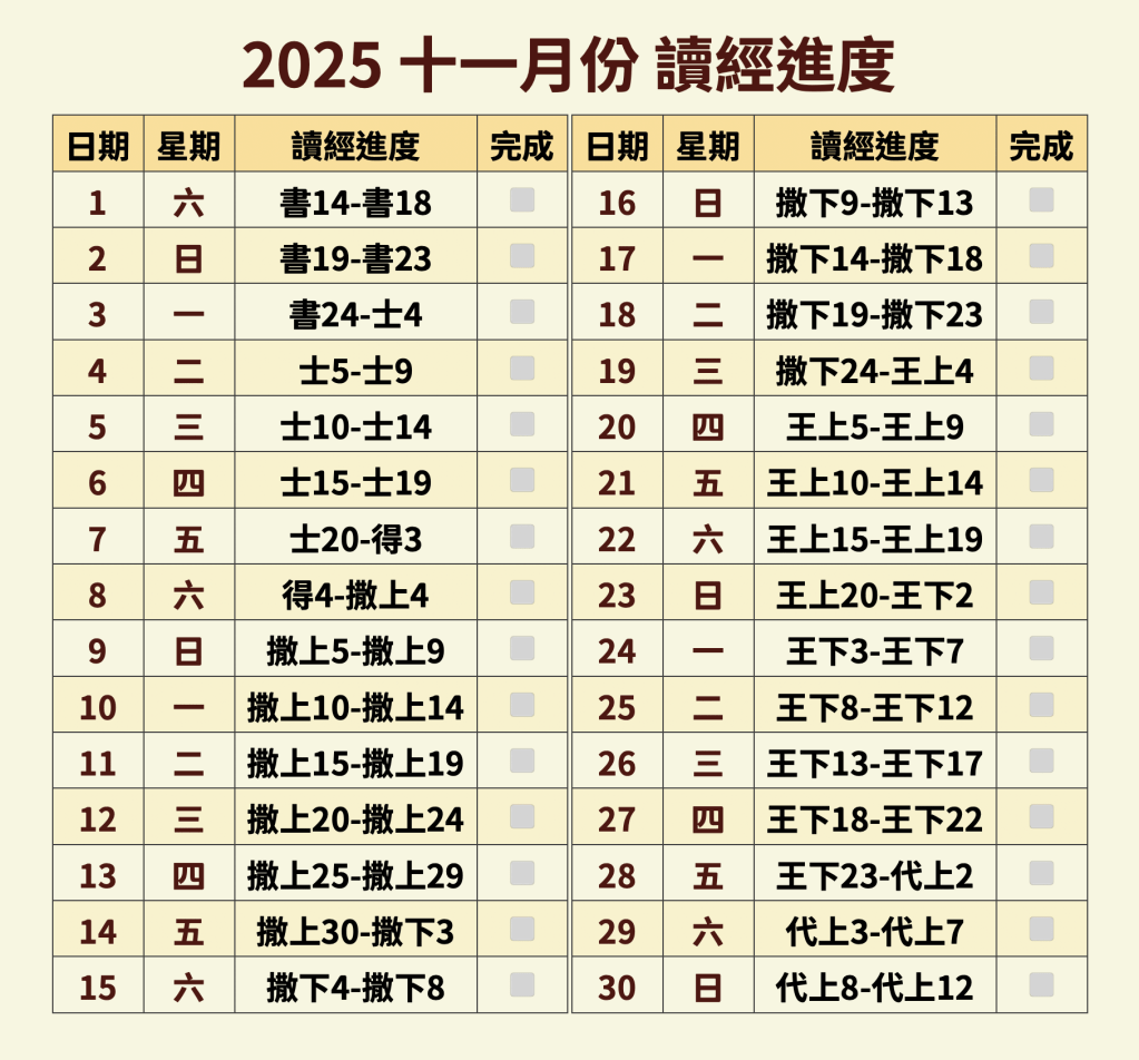 讀經進度
