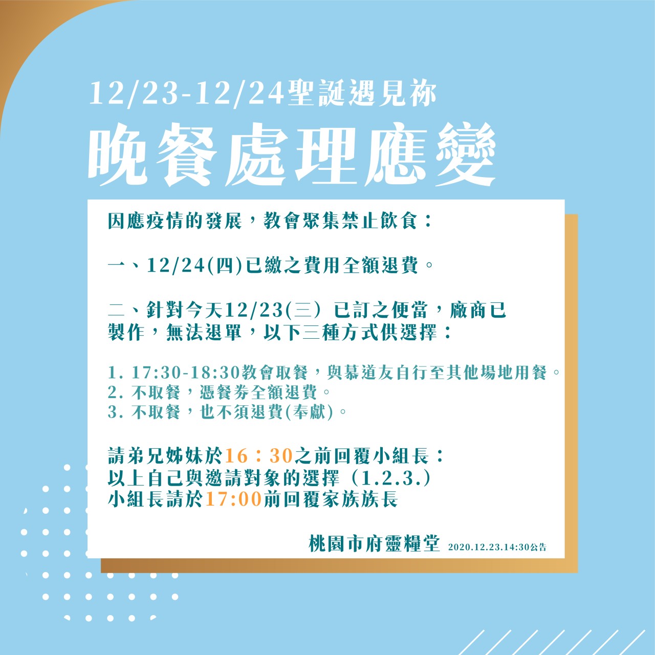 C.若有身體不適,額溫≧37.5度者,請留在家中休息,教會會由牧養系統提供直播連結。(請回報小組長及家族族長)