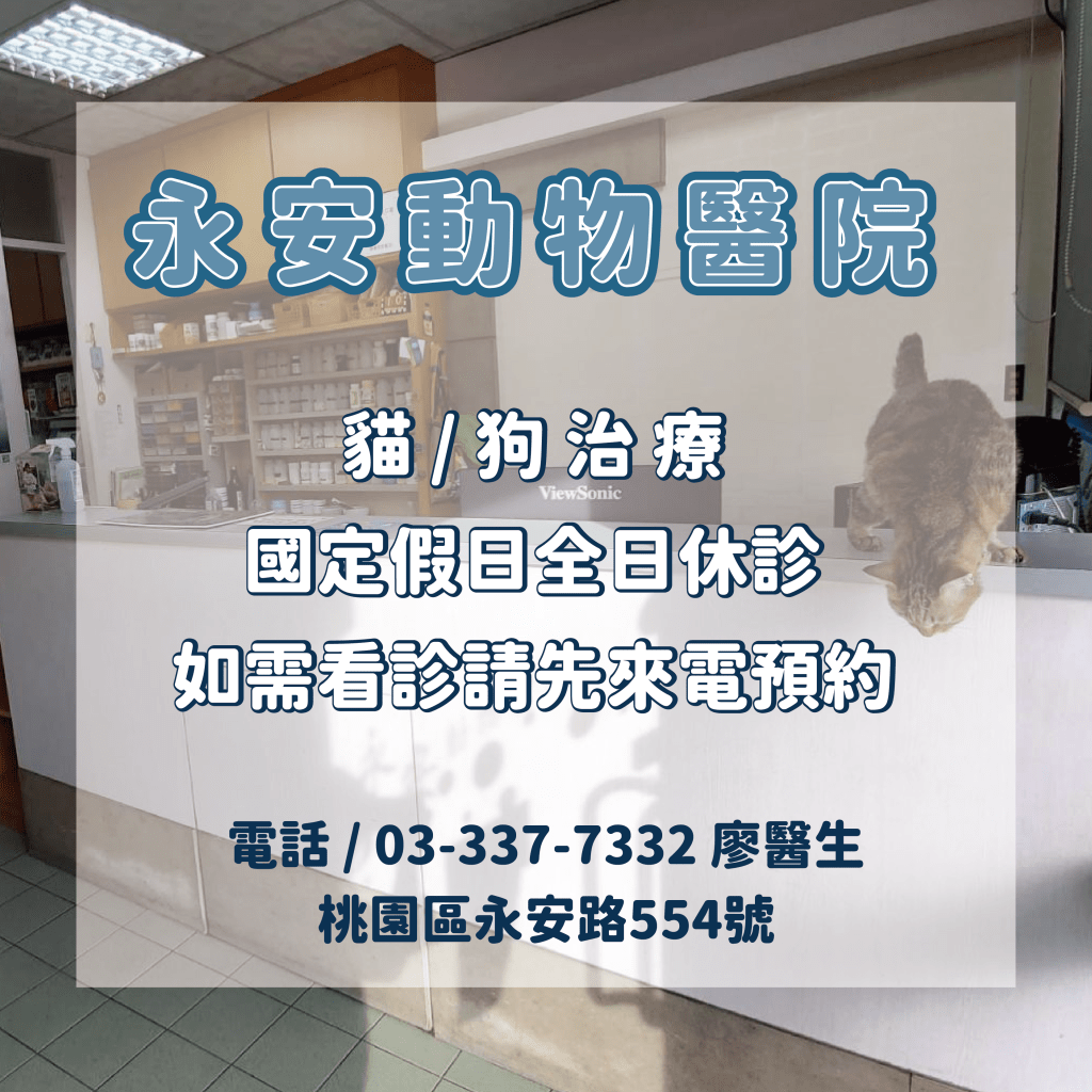 提供貓、狗治療服務,週一至週五全天看診,週六晚上休診,週日全日休診